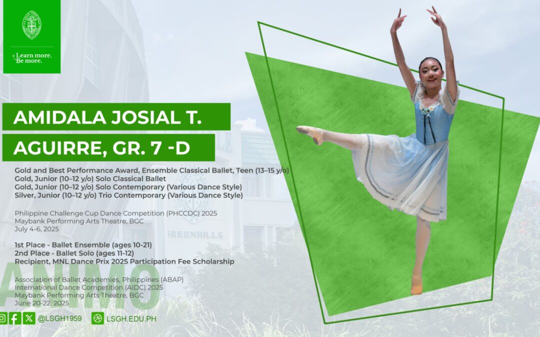 Fueled by her passion and love for ballet, our seventh grader Amidala Josial T. Aguirre danced to perfection, bagging multiple gold, silver and special awards in various categories, including classical and contemporary, at the Philippine Challenge Cup Dance Competition (PHCCDC) 2025; and, the Association of Ballet Academies, Philippines (ABAP) held in July and June 2025, respectively.