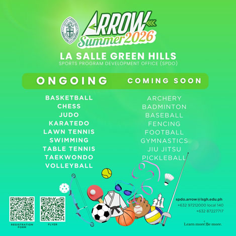 The Sports Program Development Office (SPDO) currently offers seventeen (17) exciting sports programs to engage your kids this summer! The program is open to boys and girls ages 4 and up, LSGH and non-LSGH students. To know more about our offerings, email us at spdo.arrow@lsgh.edu.ph or call 87212000 local 140 or 87227717.