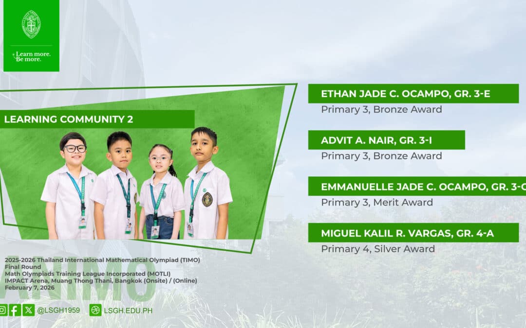 Congratulations to our third graders—Ethan Jade C. Ocampo, Advit A. Nair, and Emmanuelle Jade C. Ocampo—and fourth grader Miguel Kalil R. Vargas for their outstanding performance in the 2025–2026 Thailand International Mathematical Olympiad (TIMO) Final Round, where they bagged one silver, two bronze, and one Merit Award.